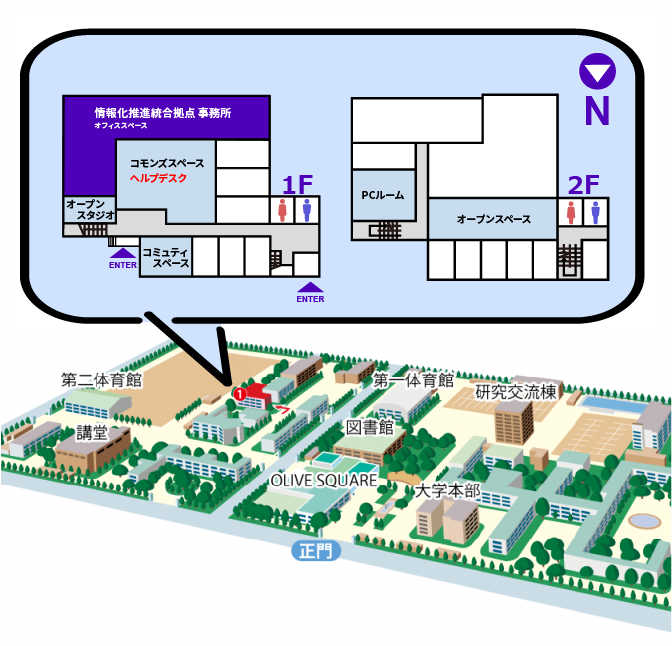 「情報メディアセンター」は,「情報化推進統合拠点 事務所」に設置。